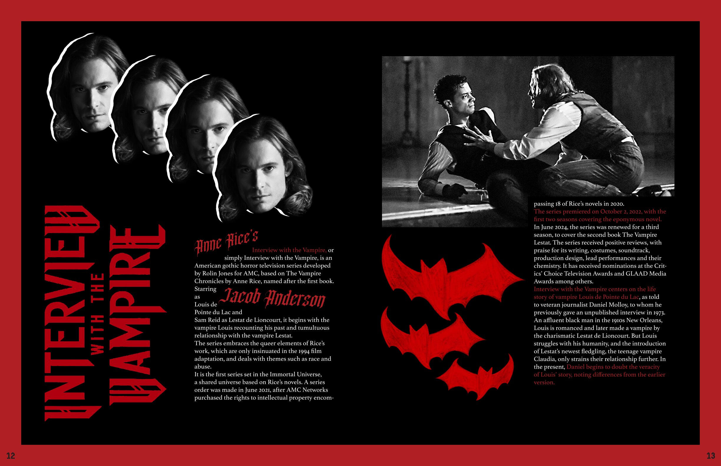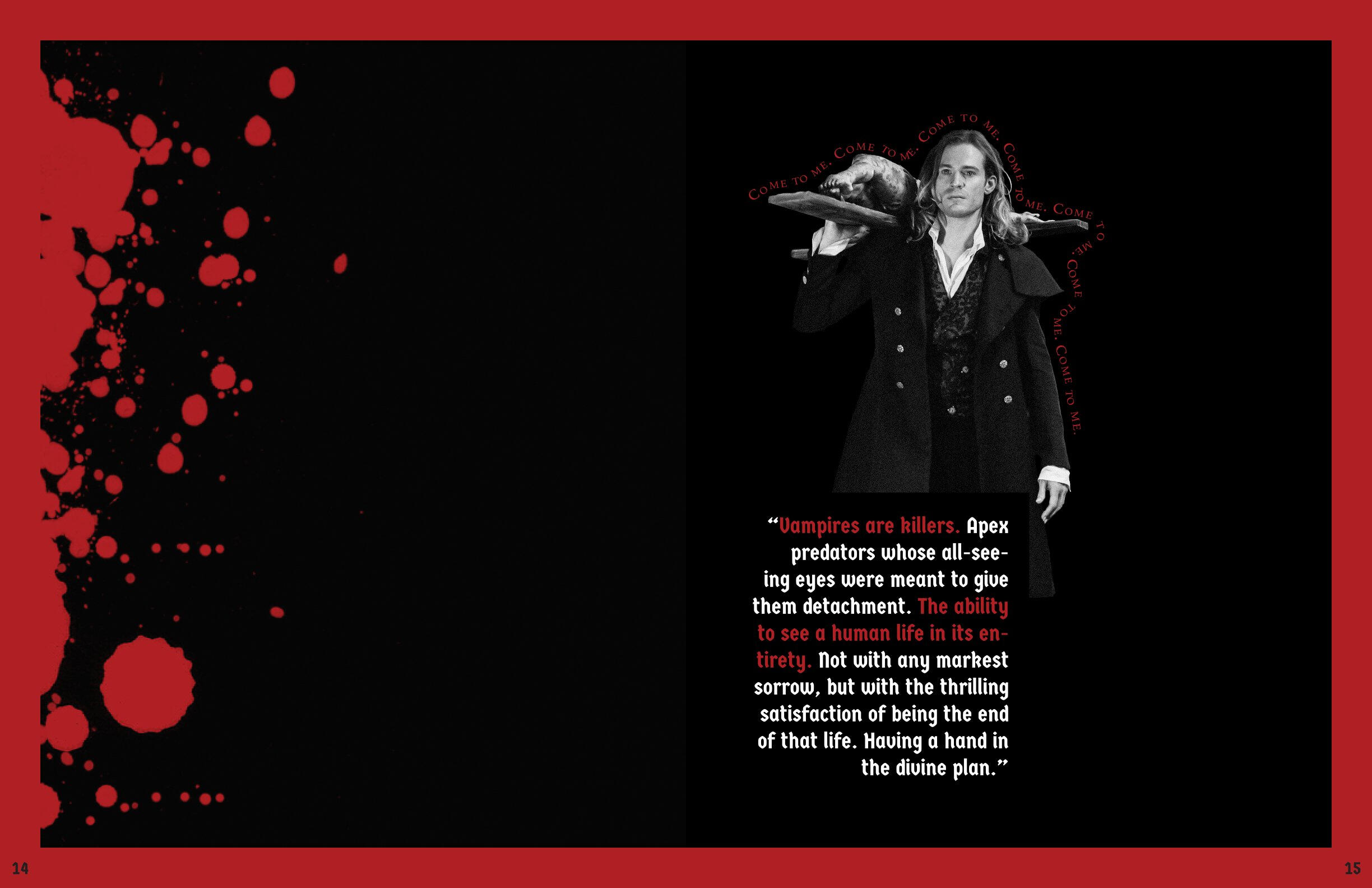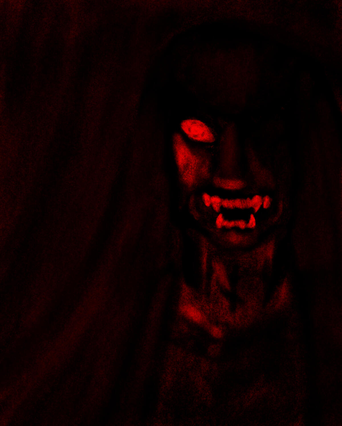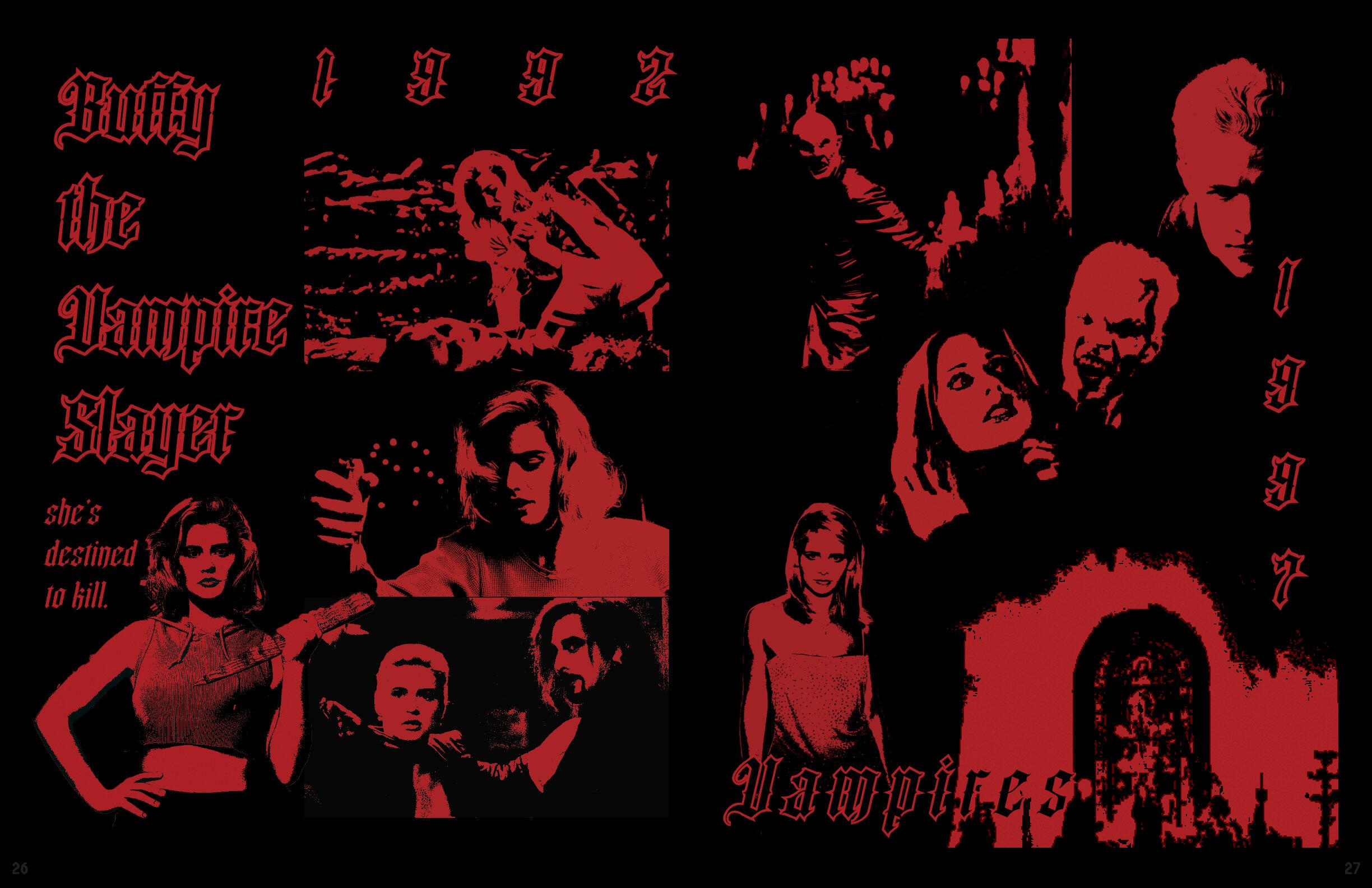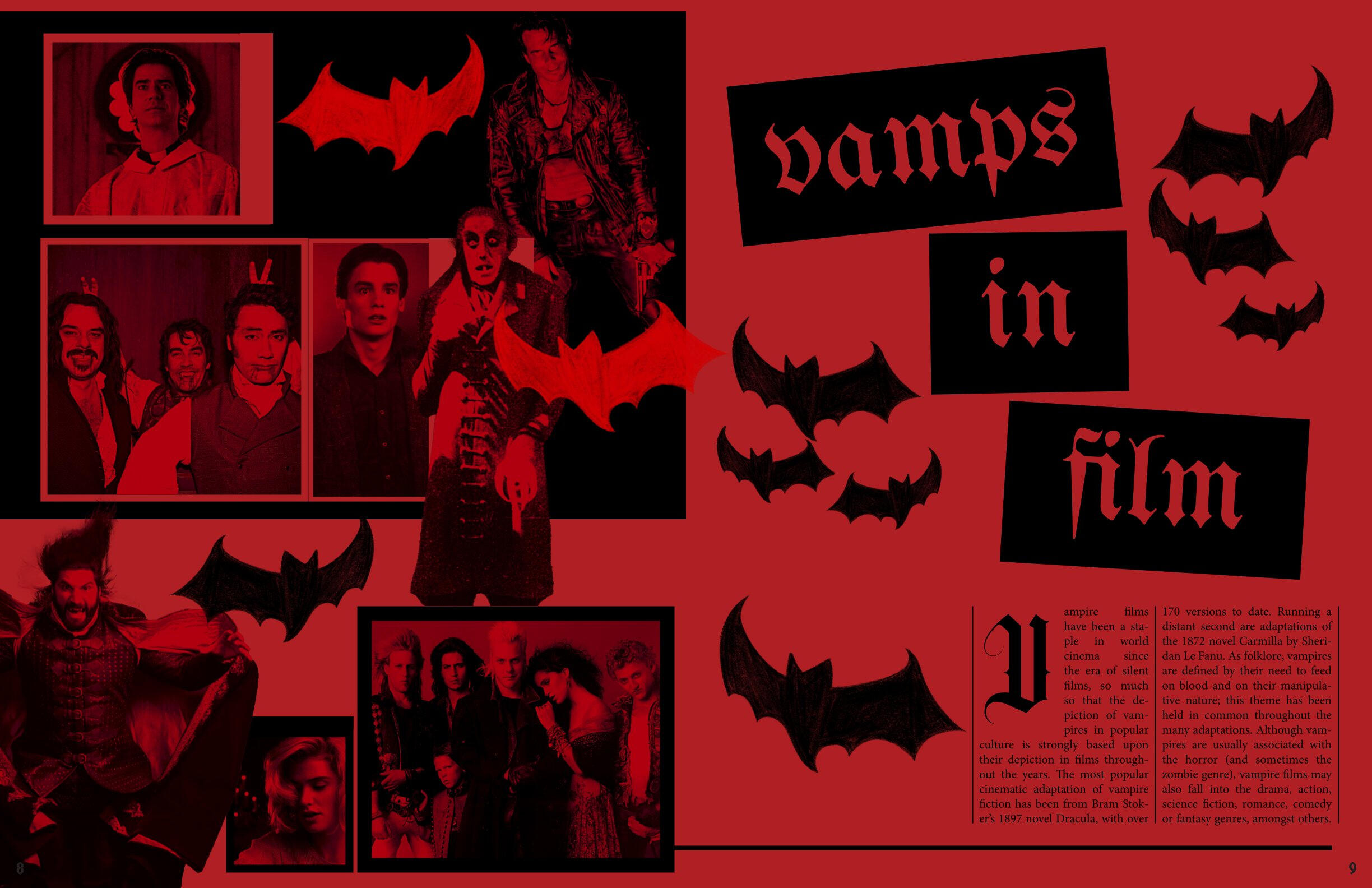 The art that I create has elements of horror and the macabre portrayed through fantasy and the supernatural. My influences are from film, TV shows, and games; I had always loved these subjects ever since I was a kid, when I dressed up as Monster High’s vampire character, Draculaura, for Halloween. The main horror inspiration that flows throughout all of my work is NBC’s Hannibal and AMC’s Interview with the Vampire, by the way they portray horror as beauty alongside their appraisal of the arts.In order to portray these atmospheres in my work, the colors I utilize are an achromatic color scheme alongside reds, either being the dominating color or the highlight. I like to utilize charcoal, or charcoal texture, in my figure drawing and portraiture of human or humanoid creatures. I also photograph liminal, southern landscapes such as bayous and forests, cemeteries, bones, and Catholic churches. With some of those photographs, or with found photos, I digitally manipulate them to make collages with typography surrounding the motif of death.