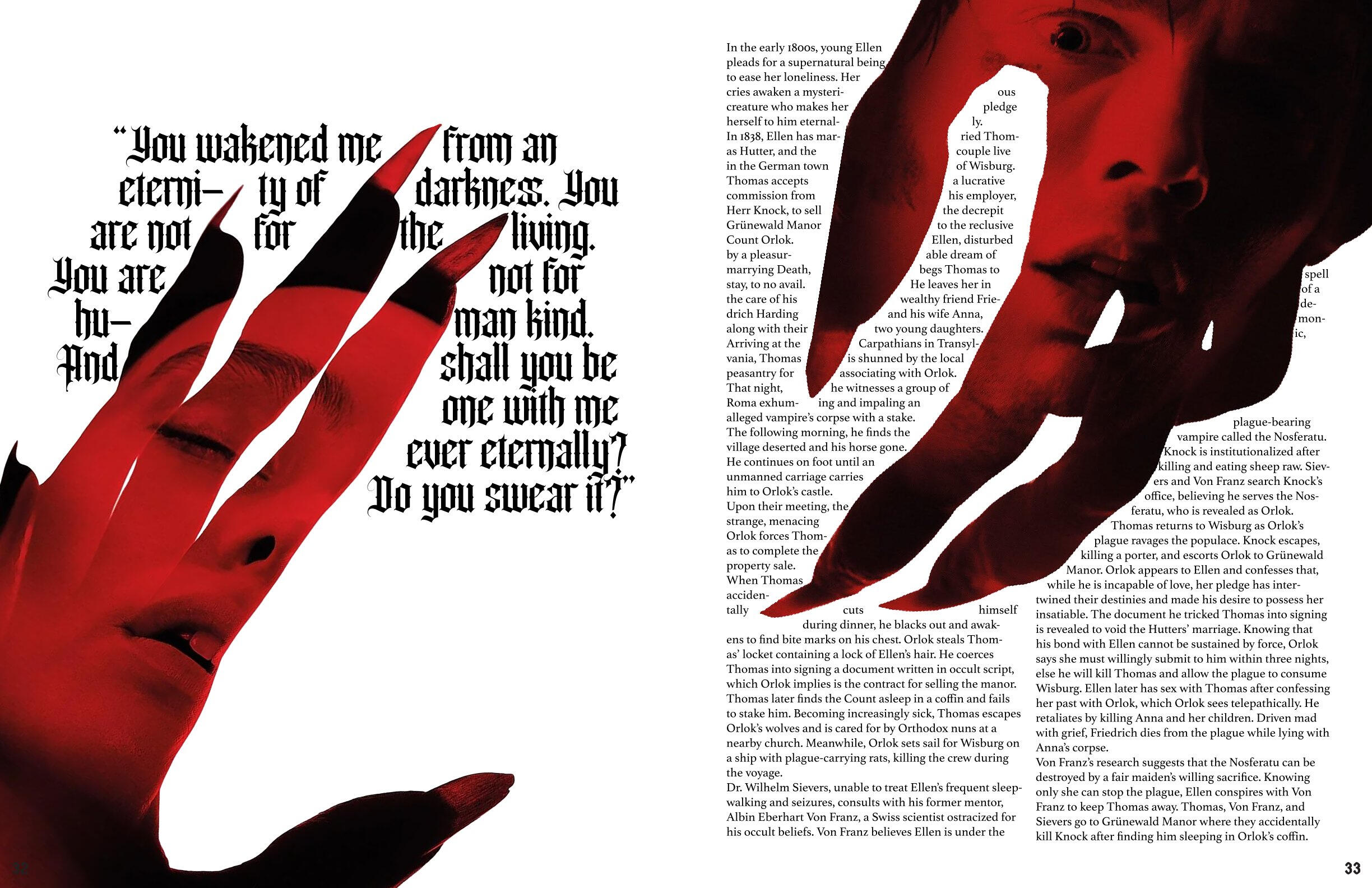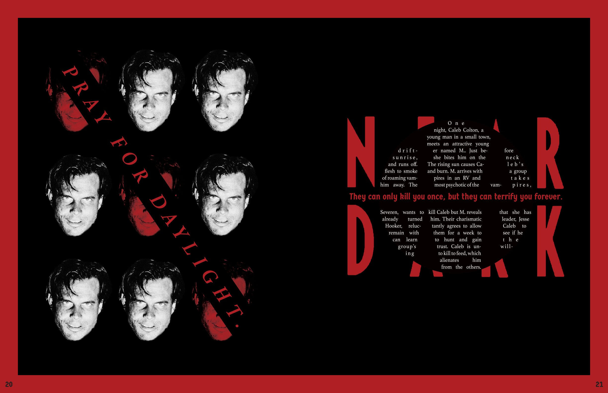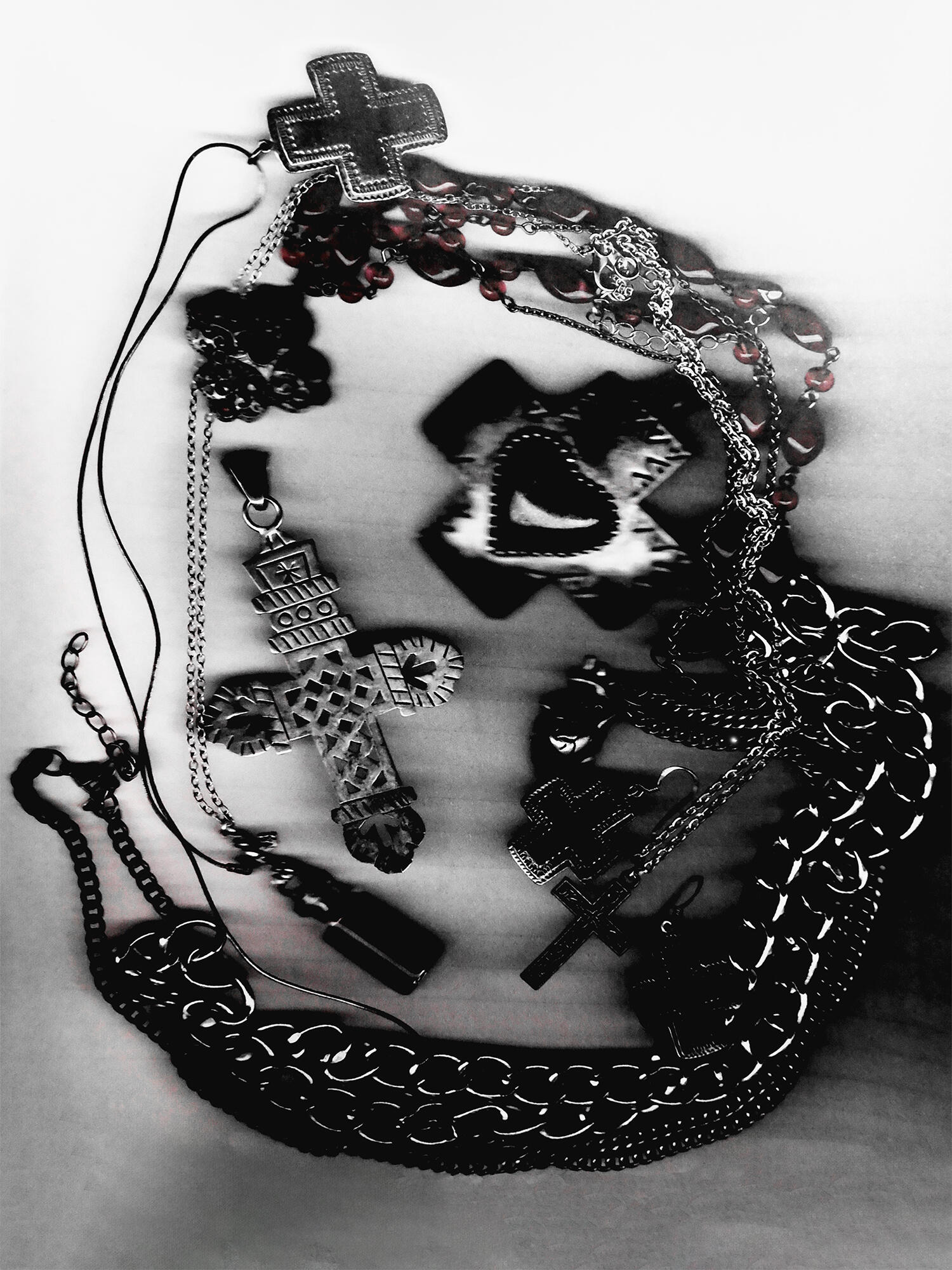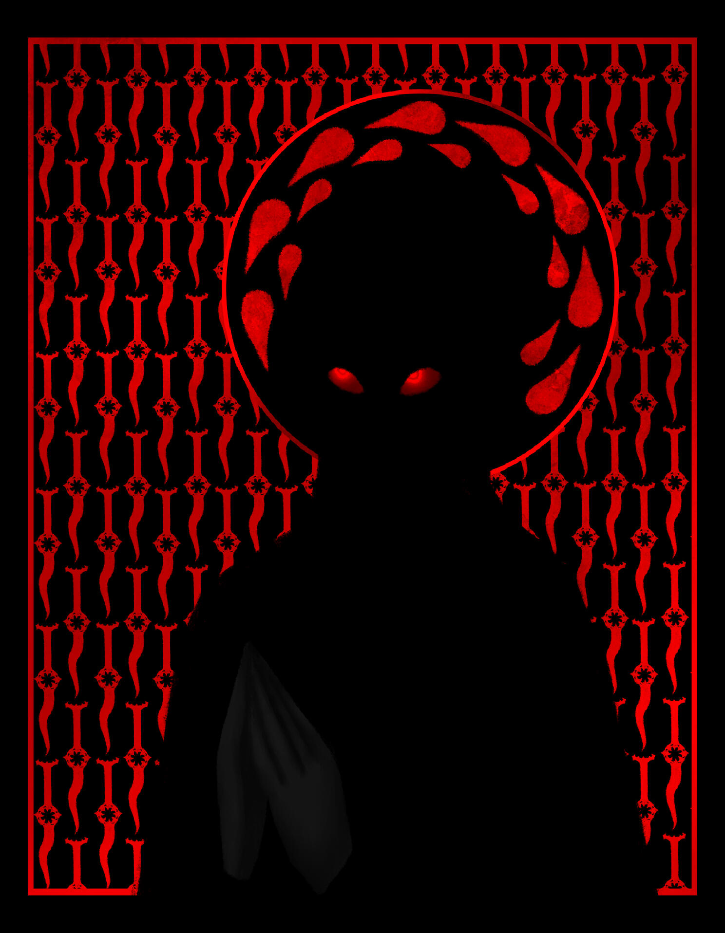 The art that I create has elements of horror and the macabre portrayed through fantasy and the supernatural. My influences are from film, TV shows, and games; I had always loved these subjects ever since I was a kid, when I dressed up as Monster High’s vampire character, Draculaura, for Halloween. The main horror inspiration that flows throughout all of my work is NBC’s Hannibal and AMC’s Interview with the Vampire, by the way they portray horror as beauty alongside their appraisal of the arts.In order to portray these atmospheres in my work, the colors I utilize are an achromatic color scheme alongside reds, either being the dominating color or the highlight. I like to utilize charcoal, or charcoal texture, in my figure drawing and portraiture of human or humanoid creatures. I also photograph liminal, southern landscapes such as bayous and forests, cemeteries, bones, and Catholic churches. With some of those photographs, or with found photos, I digitally manipulate them to make collages with typography surrounding the motif of death.